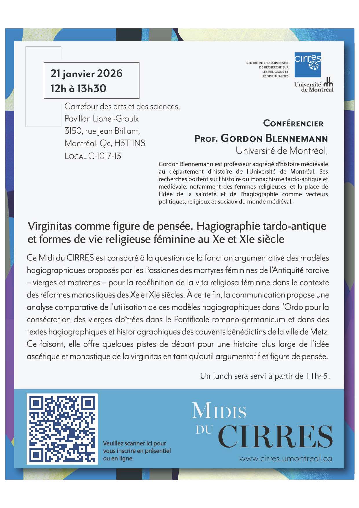 Le CIRRES a le plaisir de vous inviter à sa première conférence des Midis du CIRRES pour l’année 2026 avec Gordon Blennemann, professeur au Département d'histoire de l'Université de Montréal, […] |